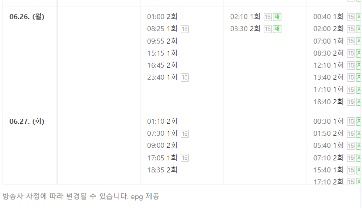 재방송 편성표 바로가기