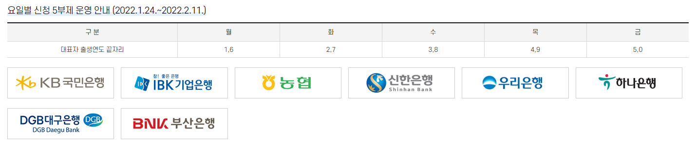 - 대표자 출생연도 끝자리 5와 0 => 1.28(금), 2.4(금), 2.11(금) 신청 가능