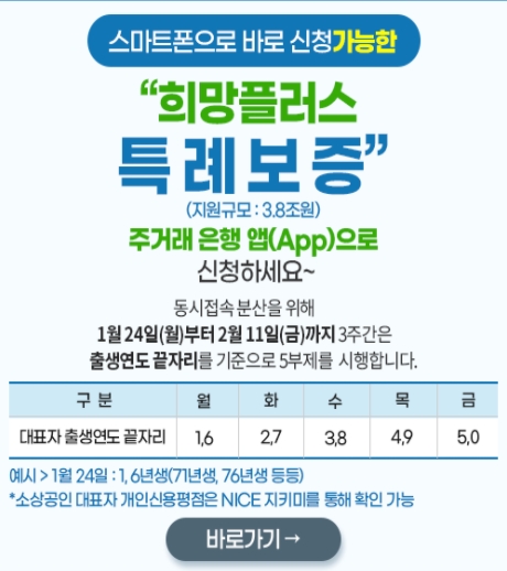 정부에서는 코로나19로 영업제한(영업정지)을 당한 소상공인에게 여러 가지 지원금을 지원해주고 있습니다. 올해 1.3일부터 저신용자를 대상으로 하는 소상공인 희망대출을 시작으로 이번엔 중/고 신용자를 대상으로 하는 소상공인 희망대출플러스 특례보증을 실시합니다. 1.24일부터 처음 3주간은 이용자 집중을 방지하기 위해 5부제를 실시하는데요. 현재 8개의 시중은행과 지방은행 앱을 통해서 신청할 수 있다고 하는데요. 신청방법과 대상 및 신용점수 등 확인하는 방법 등에 대해서 알아보도록 하겠습니다.