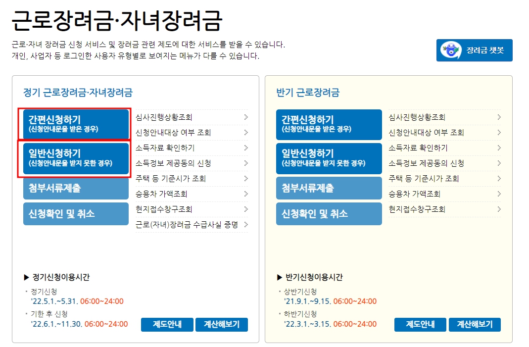 근로(자녀) 장려금 신청 기간 / 지급일
