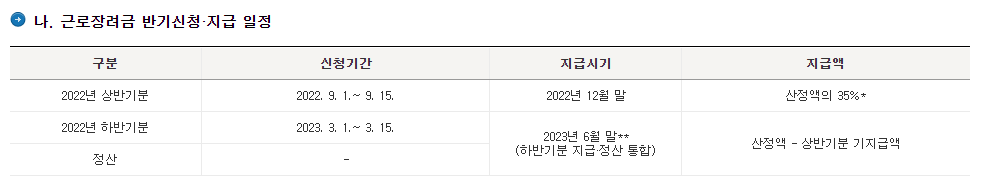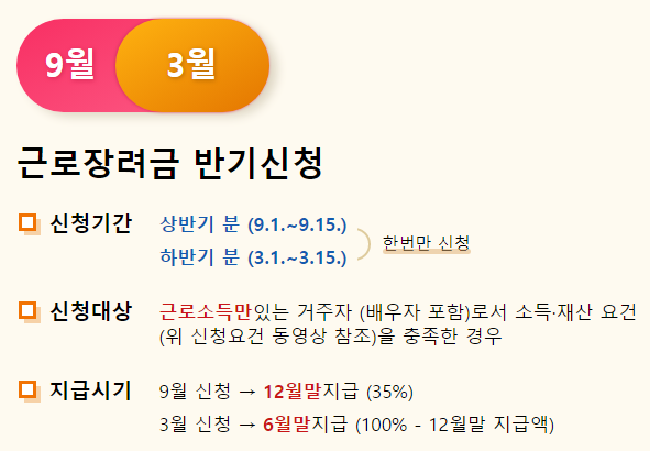 근로(자녀) 장려금 반기 신청 기간 / 지급일