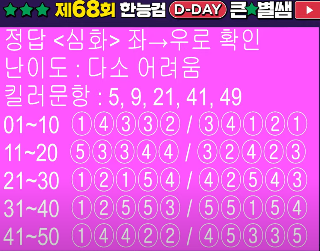 한국사능력검정시험 68회 한능검 가답안 확인 난이도(시험 결과)