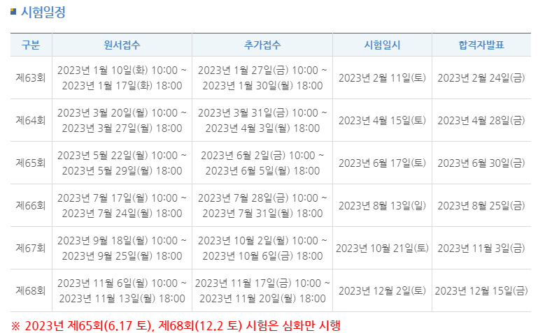 ㅇ 68회 한능검 일정 : 2023년 12.2일(토)